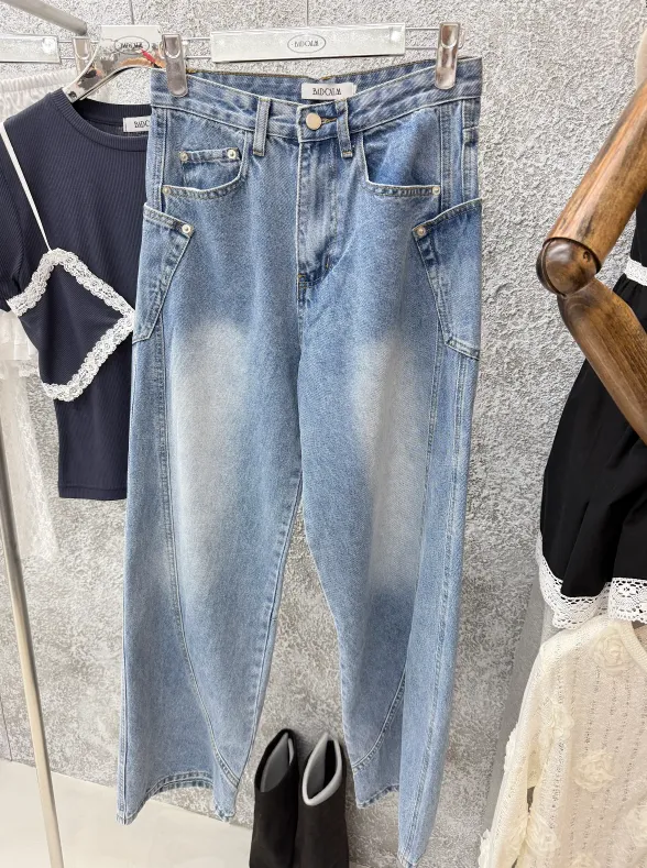 OF35水洗雙開衩牛仔褲