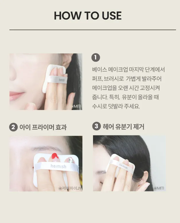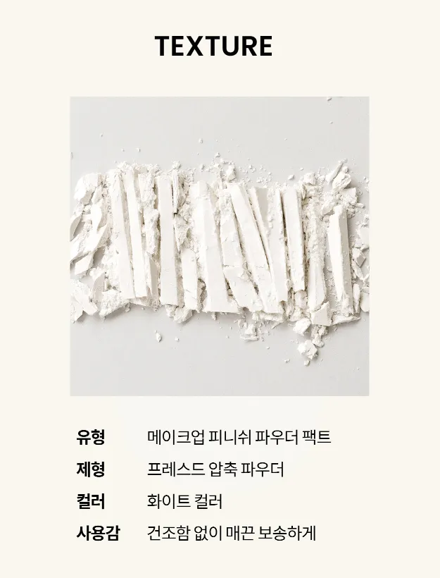 使用方式 / 在基礎妝容的最後一步,使用粉撲或刷子輕輕拍打,幫助妝容持久固定。特別是出油時,適合隨時補妝。