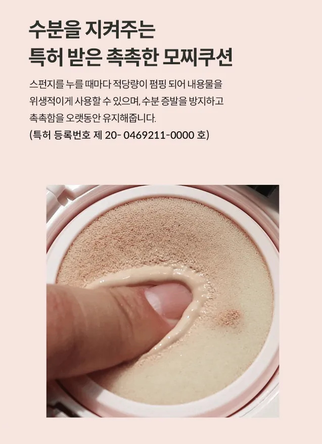 獲得專利的海綿氣墊底座,讓您每次按壓海綿,都會壓出適量粉底,可長時間保持粉底濕潤防止水分蒸發。