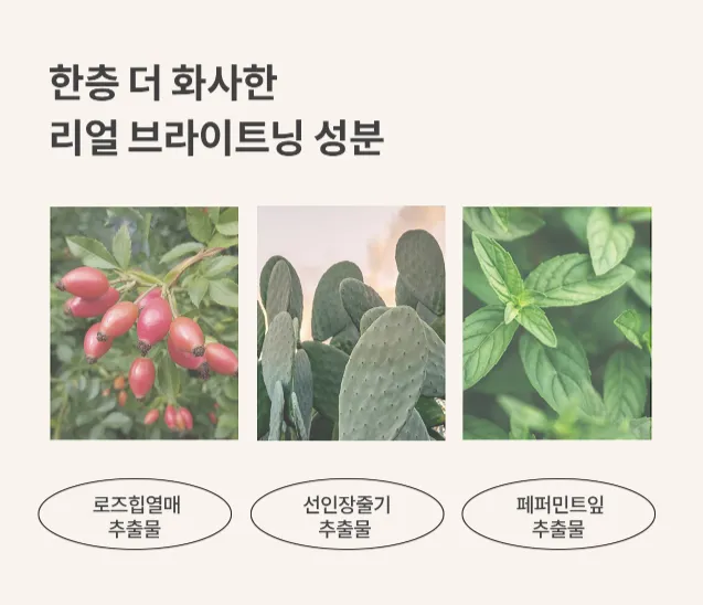 將玻尿酸、玫瑰果、仙人掌莖、薄荷葉等保濕因子融入粉底,不只補充水分更能維持肌膚持久明亮,