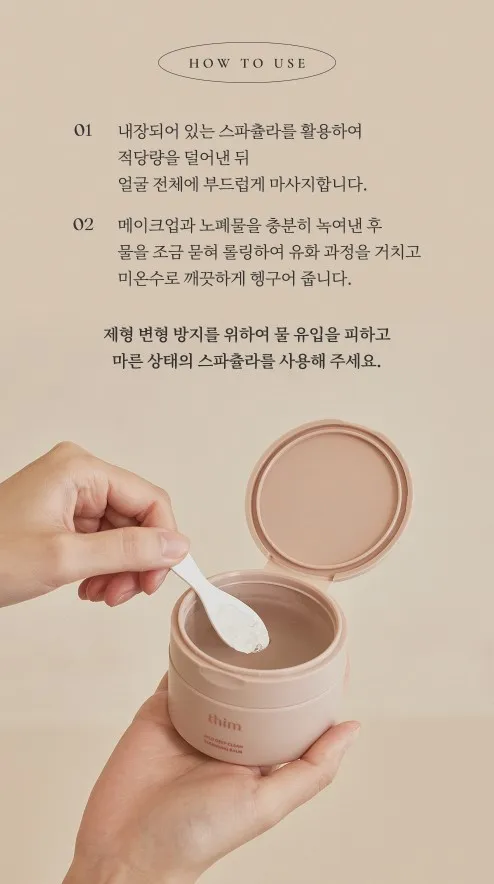 使用方式 / 使用內附的挖勺取適量,均勻塗抹於全臉,輕柔按摩,彩妝充分溶解後,加入少量水輕輕按摩乳化,用溫水沖洗乾淨。