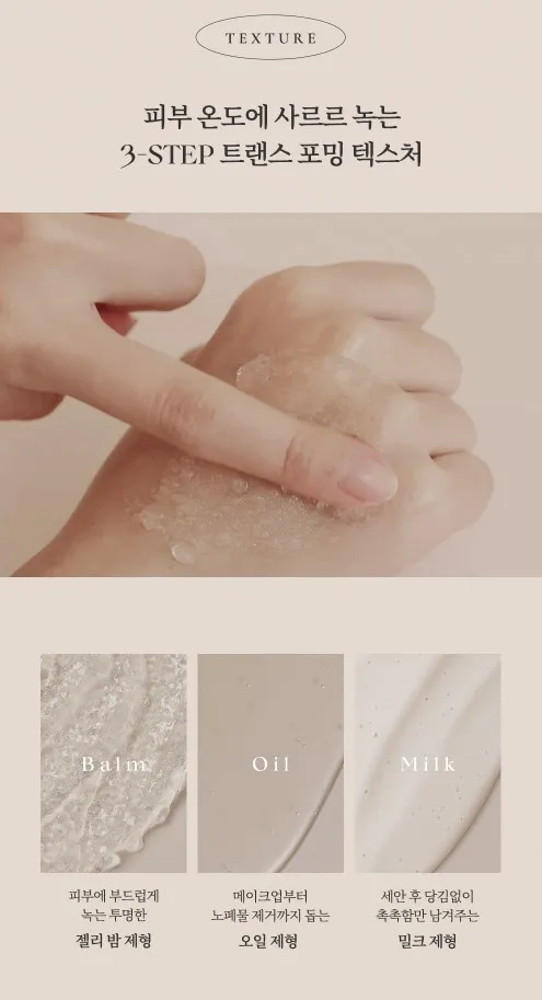 獨特凝膠膏狀→油狀→乳液 三步轉換質地,輕鬆溶解彩妝,遇水即乳化,洗後肌膚潔淨清爽,毫無緊繃感,