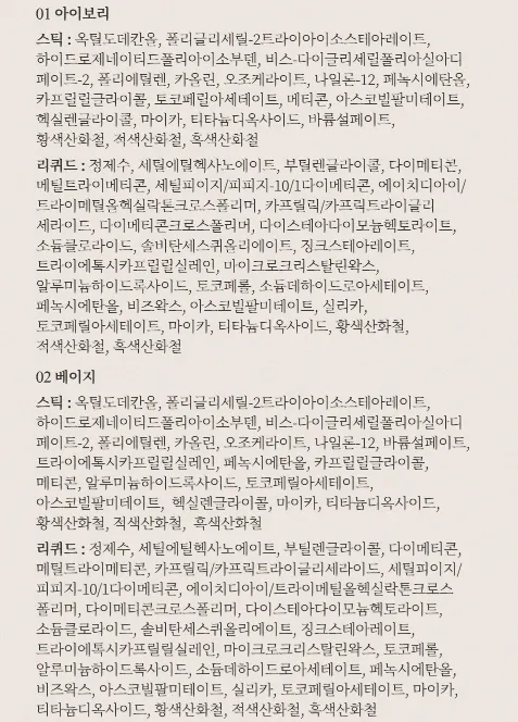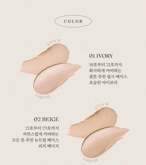 01 IVORY(象牙白)適用於 19~21號色號肌膚,瓷白象牙色