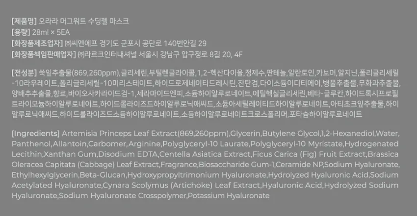 ORARA 艾草鎮靜面膜 28ml*5
