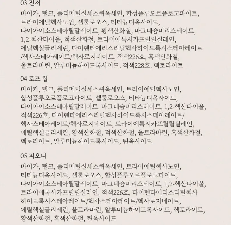 合成蠟、微晶蠟、雲母、氧化鐵、木炭粉