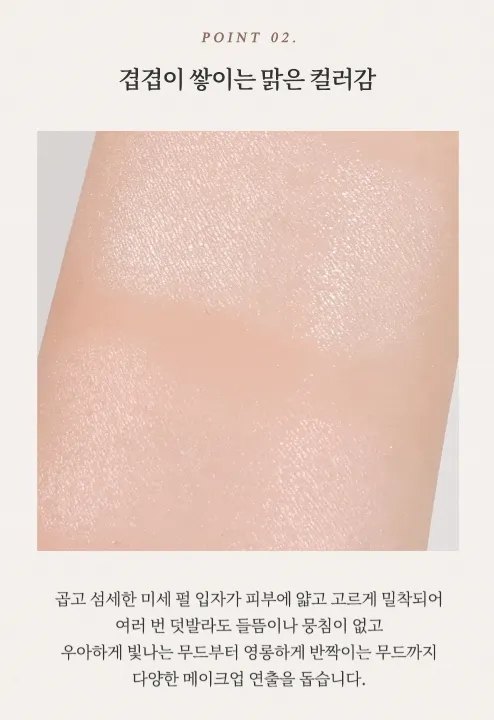 不結塊、不顯毛孔,能打造多角度反射的自然光澤,僅需輕輕一抹,即可呈現自然服貼立體光澤與持久妝效,任何膚質都能輕鬆駕馭。
