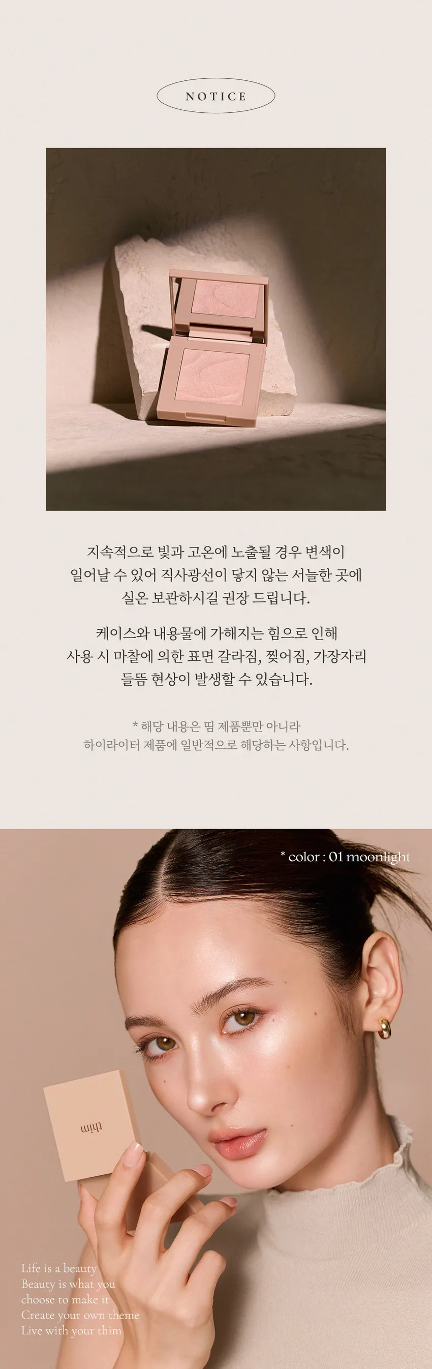 **由於粉餅與外殼結構特性,可能因摩擦產生表面刮痕或裂紋,屬正常現象,品質並無影響。