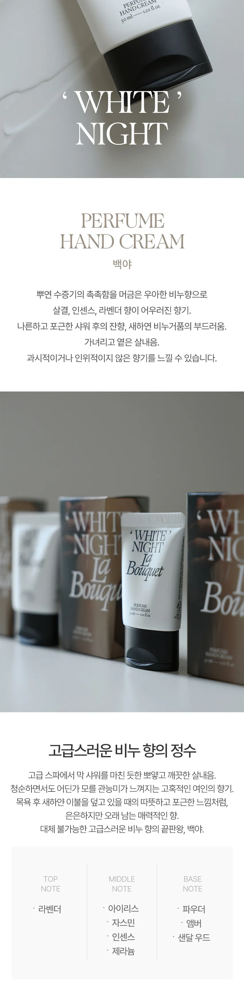 高級 SPA 後的清爽白夜與潔淨室內香氣,清新之中隱約帶有成熟魅力的高級餘韻,彷彿沐浴後裹著潔白毛巾般溫暖而舒適。|