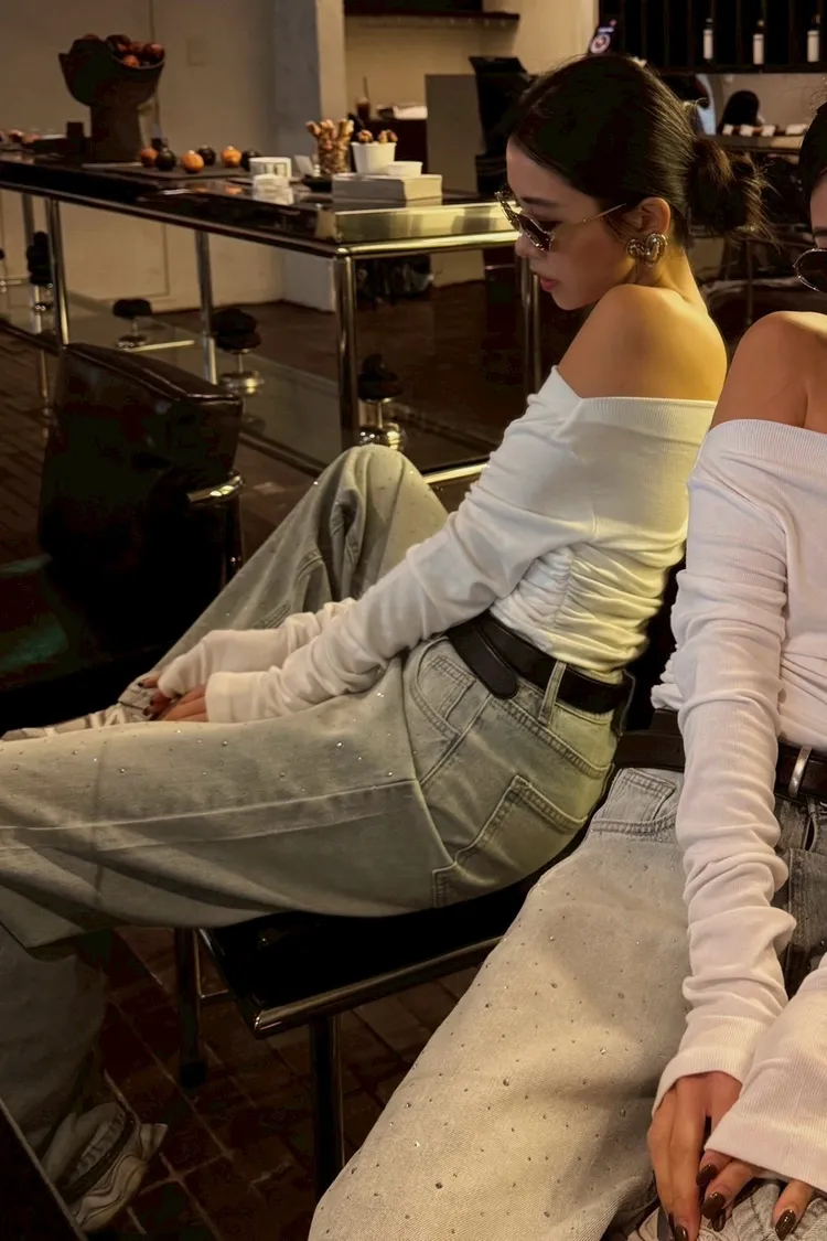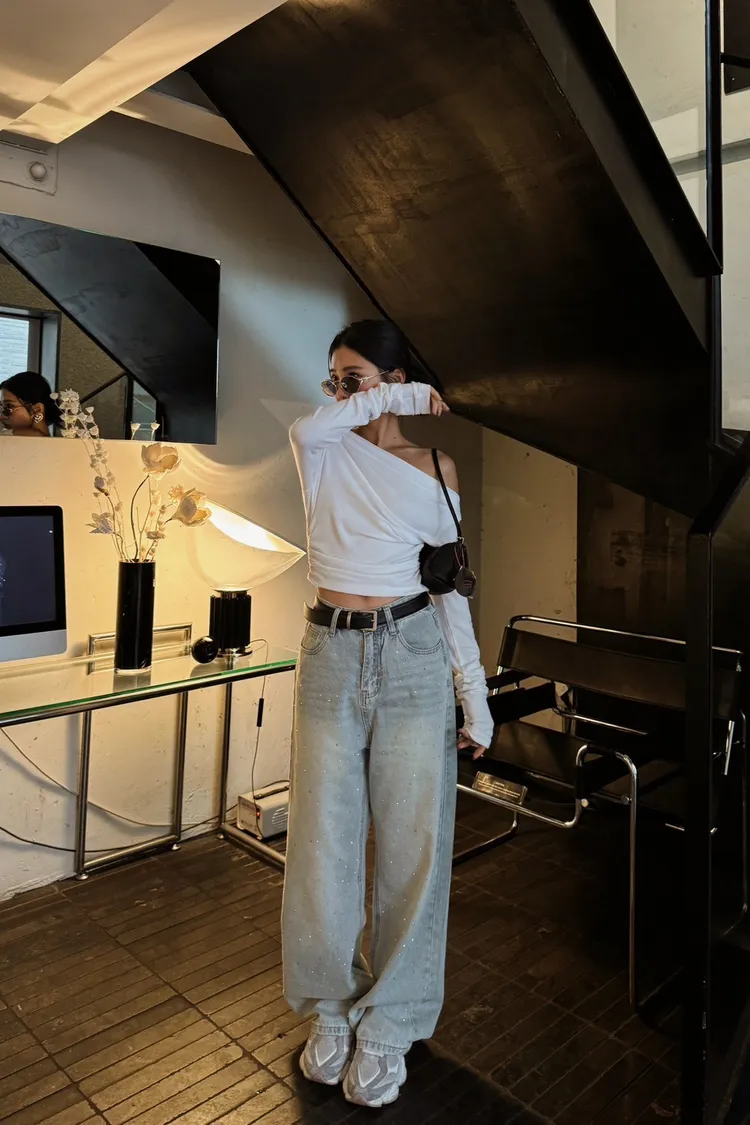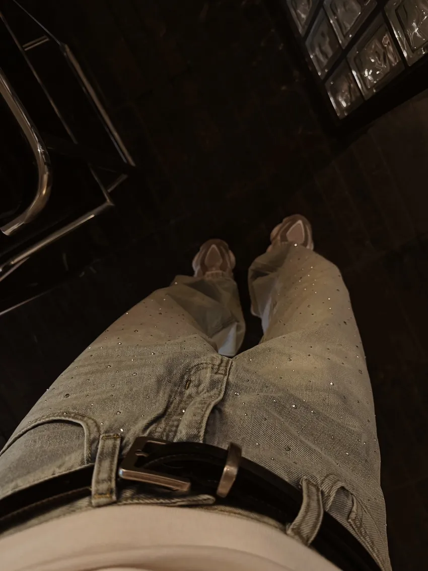 OM33低調水鑽直筒褲